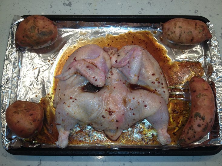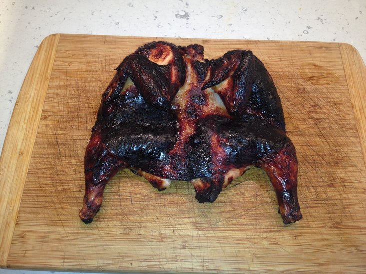 2. Turn chicken over so skin is facing up and rub glaze thoroughly on skin.