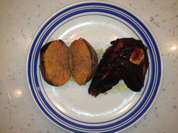 2. Add salt & pepper to sweet potato and serve.